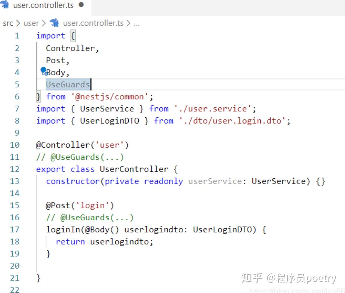 @UseGuards(AuthGuard('local')) //本地策略,传递local,执行local里面的validate方法