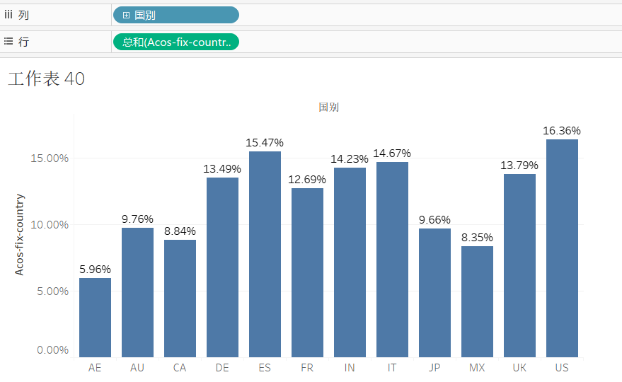 按照国别字段进行计算,图表中没有国别字段,那么Acos-fix-country会按照先聚合国别的值,然后按照行中的平均值进行计算(这种算法明显不对的),此时求得的总和或着平均值均没有意义,与我们想要的求和或着求平均值是不同概念的;