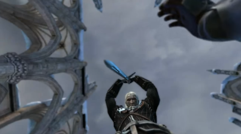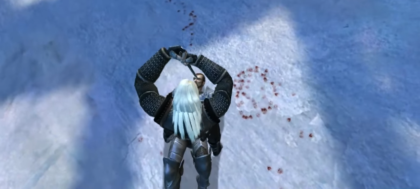 接着杰洛特毫不犹豫的一剑刺向团长的胸膛。