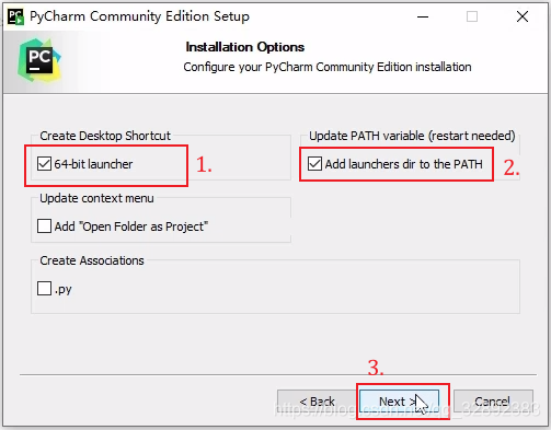 然后一路next直到安装成功 ( 以上步骤之后,不出意外桌面上会有PyCharm的快捷方式图标了,如果没有,找到安装目录下的“bin”文件夹下的pycharm64.exe文件,选中后右击选择“发送到”–>“桌面快捷方式”)
