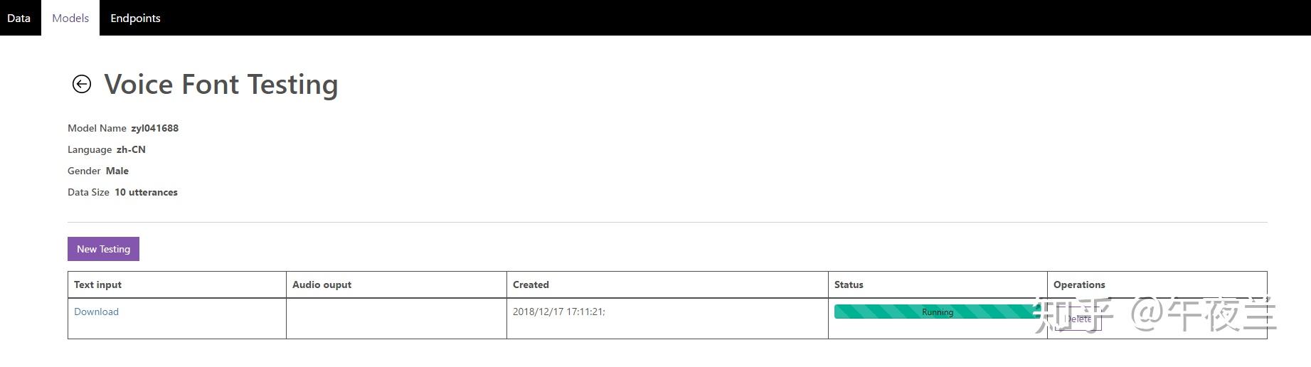 在出现 Succeeded 之前请耐心等待,创建(传说中的神经网络深度学习)过程会根据上传的文件数量和体积有所不同,几百个utterances大概耗时几个小时;20000以上utterances的训练时间将达到40小时以上(干别的事去吧,不用一直在线盯着它看)。