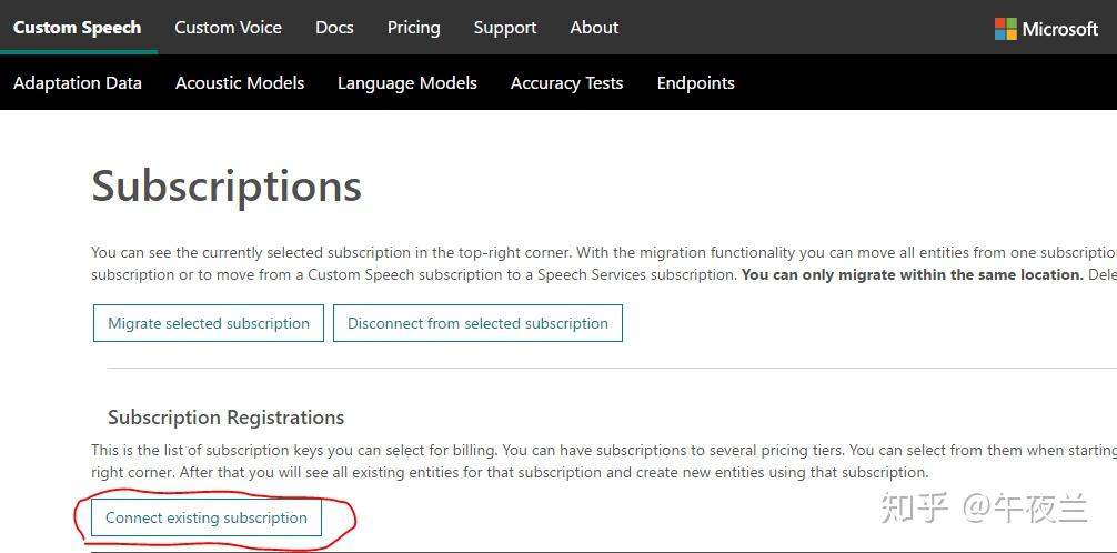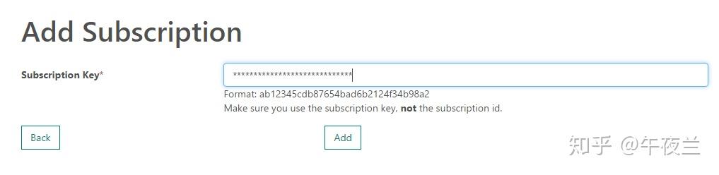 点击 ”Connect existing subscription“, 然后将刚才复制的key粘贴到窗口中