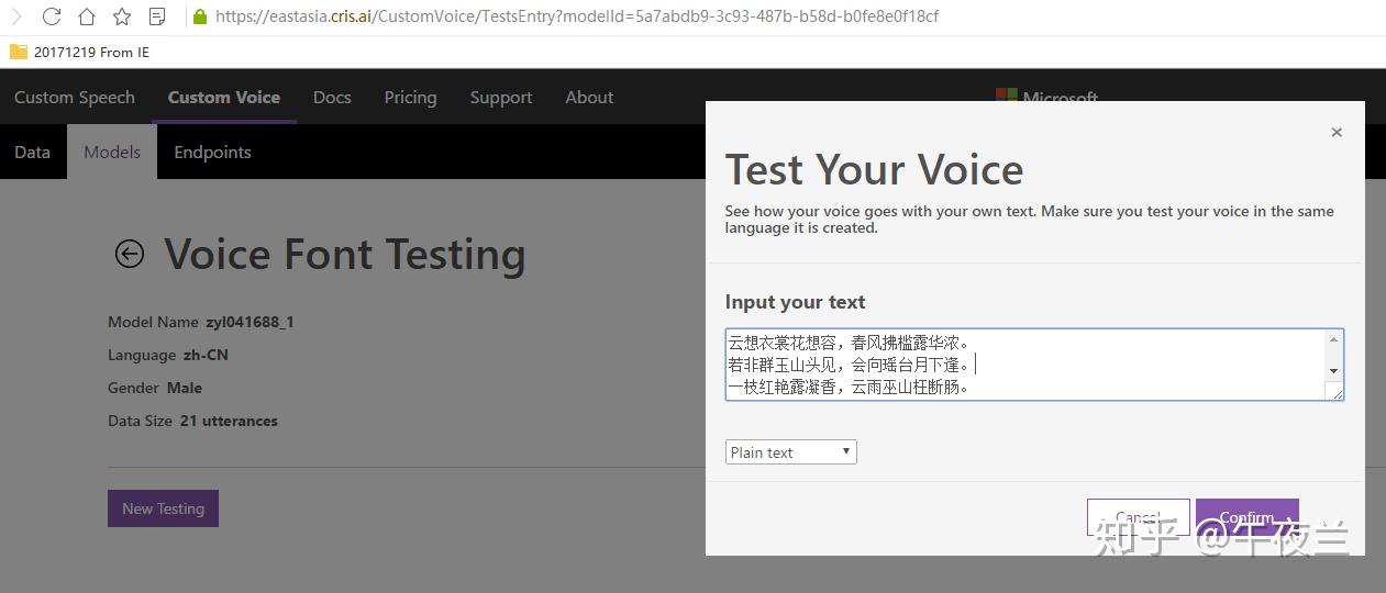 一番寻觅后,发现微软家最近刚上线了个好玩的东东——Custom Voice。