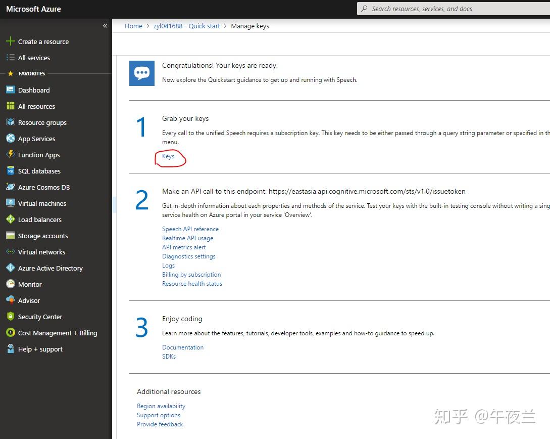 5) <Key>: 就是前文中创建语音服务时让记住的那个 Key