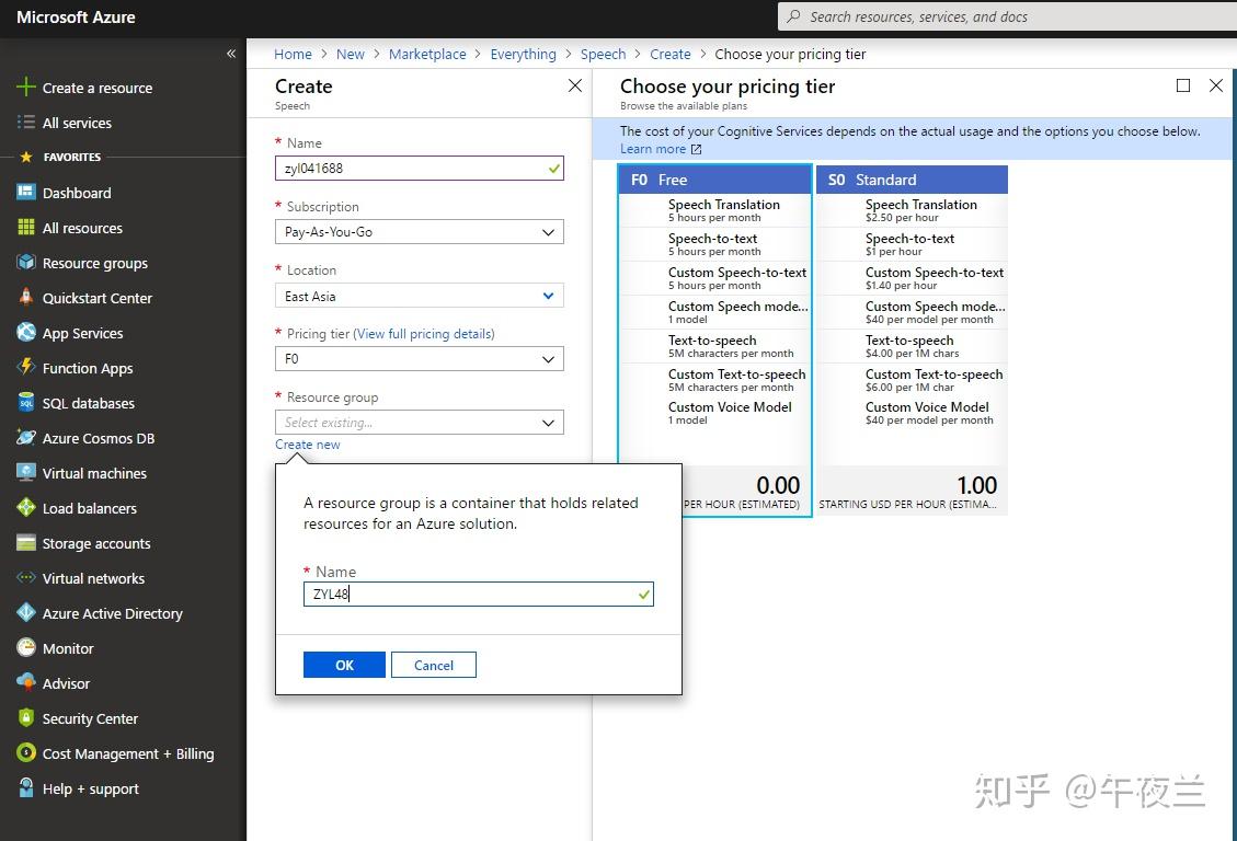 微软的TTS语音服务需要部署在他家的云平台 Azure上(孤陋寡闻了,第一次听说微软家还有这个),因此需要创建一个帐号,另外要准备一张能支付美元的信用卡,新注册的用户会赠送 $200 (别做梦了,不是真的钱啦,只能在Azure上买服务,并且有效期只有30天,所以音频没有准备好之前不要轻易开账户,我开了账户后过了一个多月才开始使用,当初送的200刀就木有了T_T)。