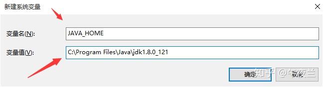 选择“系统变量”区域的“新建”功能, 在”变量名“处填写: JAVA_HOME,在”变量值“处填写刚才复制的路径。