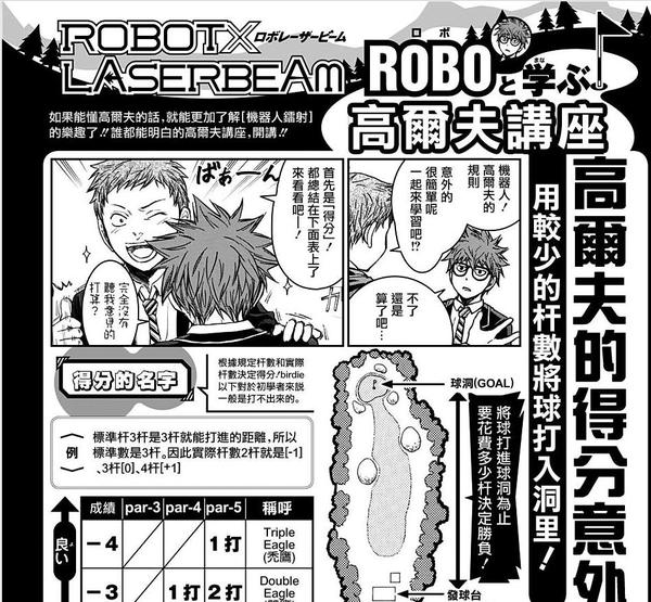 吹了这么多...也不是没有问题,藤卷忠俊老师这部《机器人的高尔夫激光炮》新作漫画最大的问题我觉得就在于高尔夫本身。选择高尔夫这样的冷门题材固然可以摆脱此前在黑篮中由于各种超能力设定所带来的非议(犹记得虎扑时不时地发帖嘴臭黑篮),但竞技类高尔夫又有几个人懂呢?当然编辑和漫画家也想到了这个问题,特意出了一个“高尔夫讲座”来为大家做科普,但在这个大多数读者都未必知道老虎伍兹(知道的大多也是因为他的泰迪属性)的年代,如何体现竞技高尔夫的魅力是很有挑战性的。