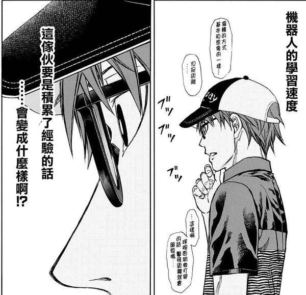 其次就是机器人般的性格,鸠原吕羽人每天都过着非常“准时”的生活,到点吃饭到点上学,就连去KTV唱歌也要像时钟一样规律...虽说这样的性格让他在人际交往中非常吃亏,但也养成了他追求精准的习惯,后面还会说到;而另一方面,就是让他有了和机器人一样强大的学习能力...简称为“阿尔法狗”(我觉得这是漫画中最BUG的地方=-=)