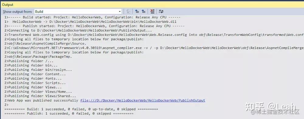 点击Next Button然后点击Publish,在VS的控制台中我们会看到如图Image-8所示的内容,表示publish成功: