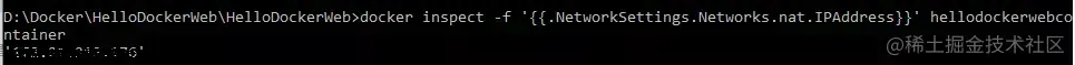 docker inspect -f '{{.NetworkSettings.Networks.nat.IPAddress}}' container-name 如图Image-15所示: