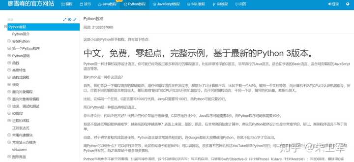 - 廖雪峰 Python 3 中文教程