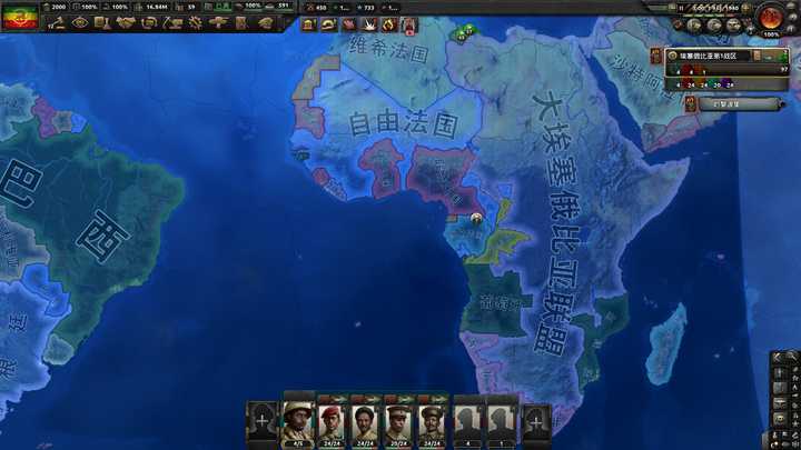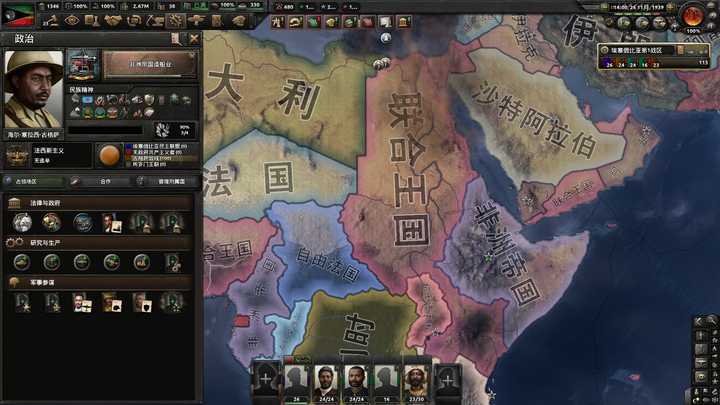 埃塞的红线点到底(皇帝线也有一个分支应该也能成立)。通过煽动殖民地独立,把非洲各国拉进理事会,可以将其整合成傀儡国并获得其核心。理论上可以获得整个非洲的核心,但是PP花费巨大,正常玩估计得攒到21世纪。