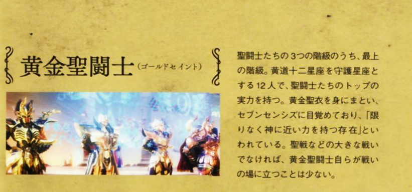 雅典娜的圣斗士中最高级别的存在,觉醒了小宇宙的真髓——第七感(Seven senses),他们的拳速及身体的动作都达到了光速,拥有弹指间粉碎宇宙星辰、扭曲时空的力量,简直是有如奇迹一般的战士。