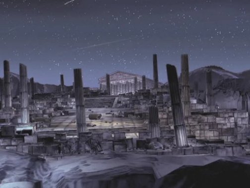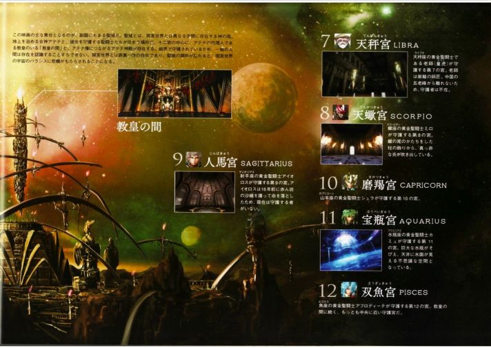 位于圣域最顶点,只有教皇才可以到的地方,空气清澄到仿佛不属于人间,被切成圆形的夜空也像是在天文馆中才看得见的景色,地板上的镶嵌工艺非常精细,上头绘有黄道十二宫的天文图,正确地指出东南西北。牡羊宫、金牛宫、双子宫、巨蟹宫……就好像从银河把星星剥落下来一样……