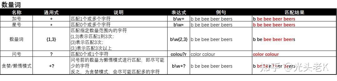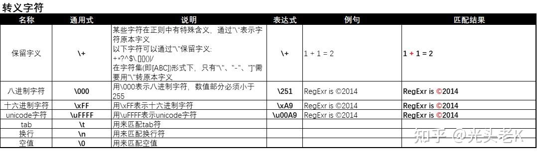 \*:由于*在正则中表示数量词,所以用\*表示字符"*"本身; -