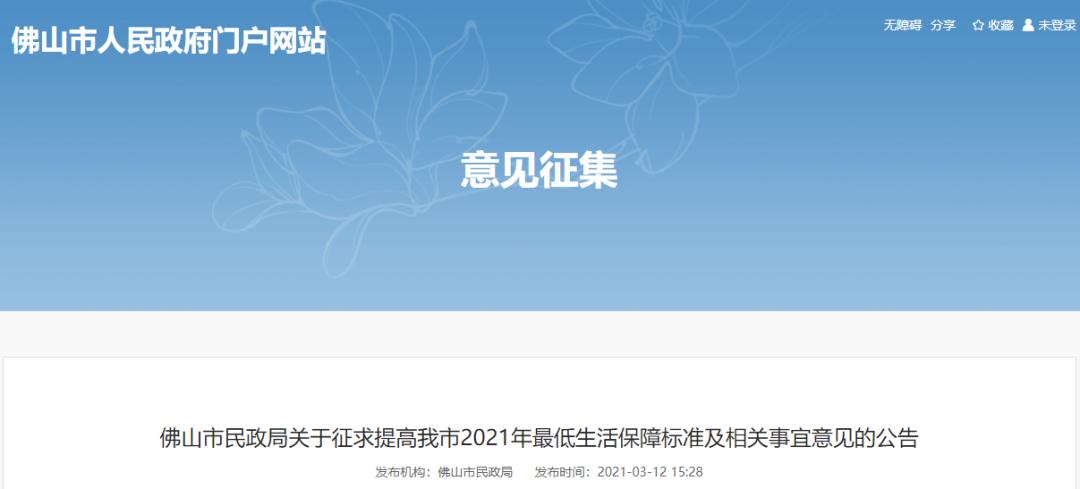佛山日前发布《关于征求提高我市2021年最低生活保障标准及相关事宜意见的公告》,拟将全市最低生活保障标准统一由1080元/人月提高到1120元/人月,其中全市低保补差标准不低于674元/人月。