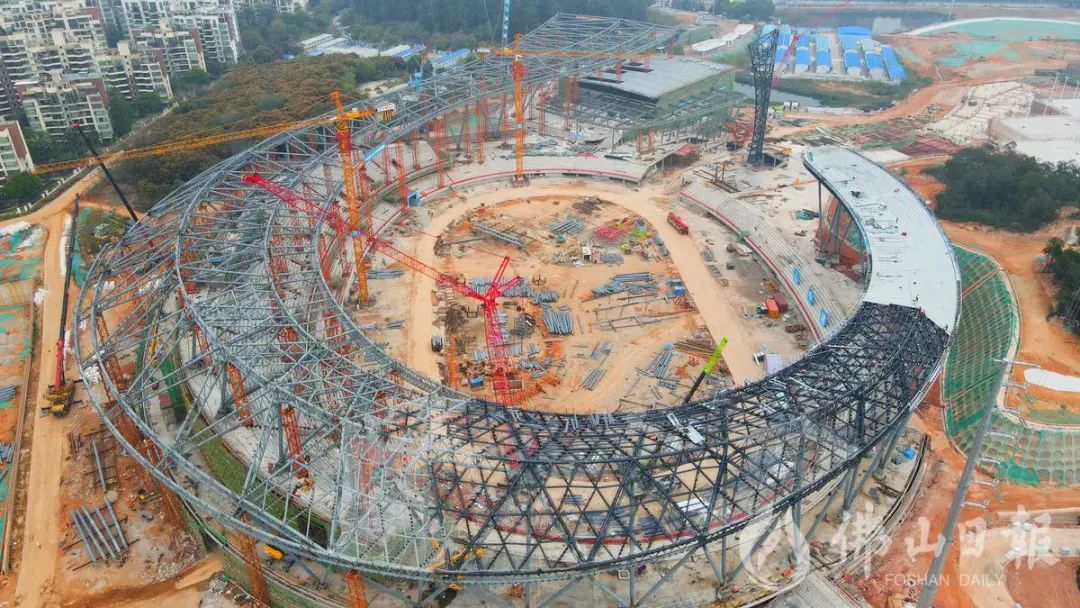 南海体育中心项目钢结构已全部封顶。佛山日报记者刘浩斌/摄