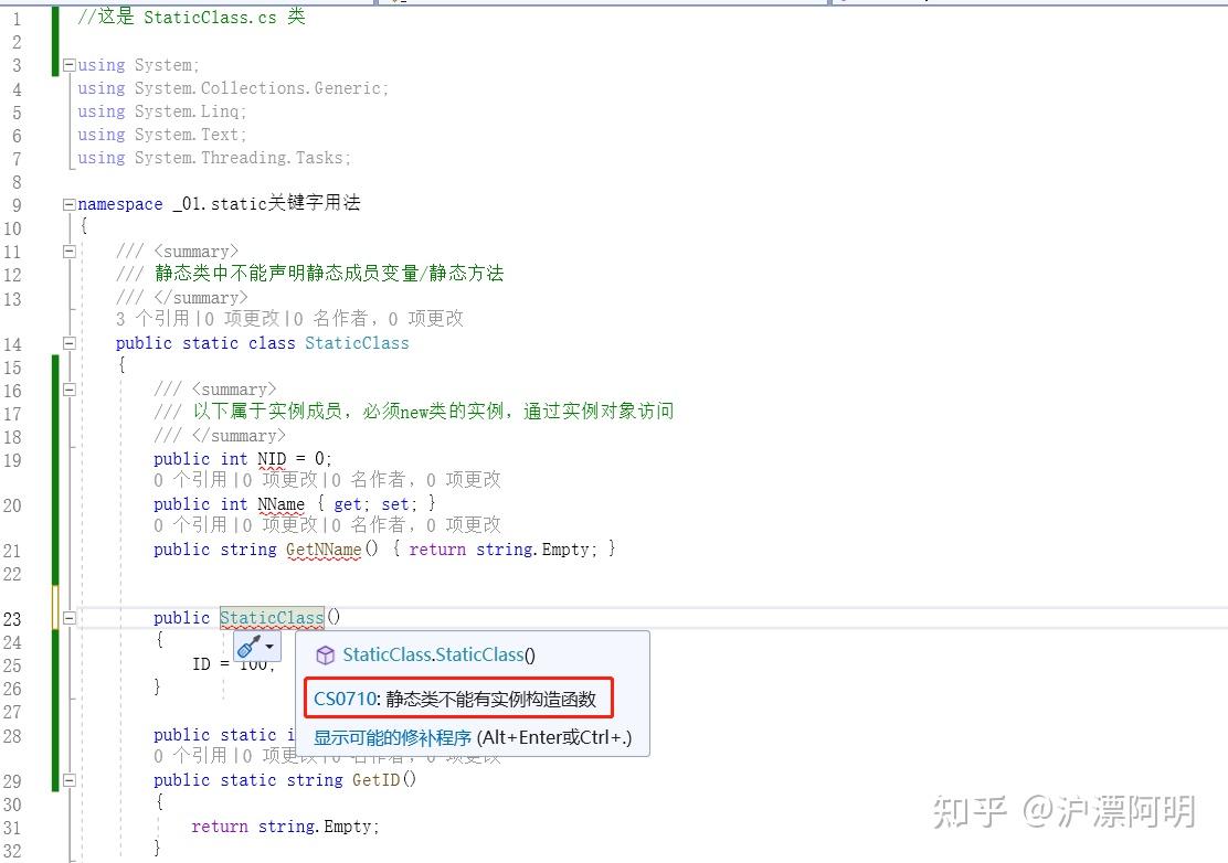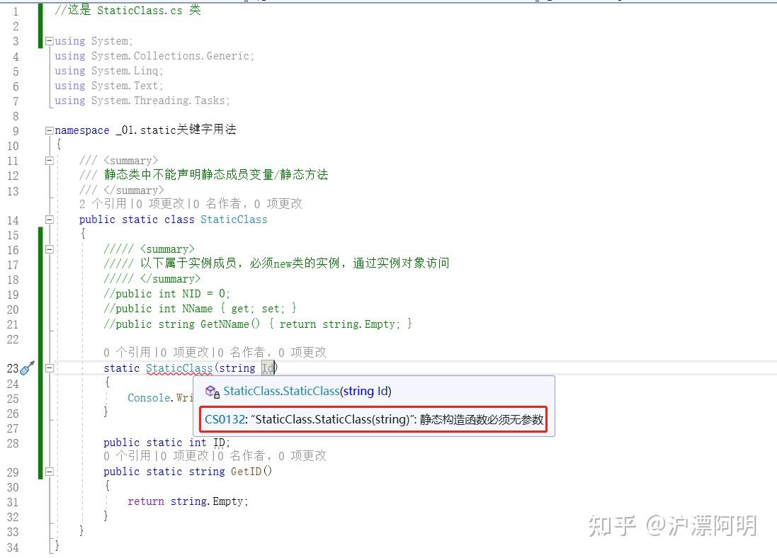 1.4)静态类只能包含静态构造函数(不能包含实例构造函数)