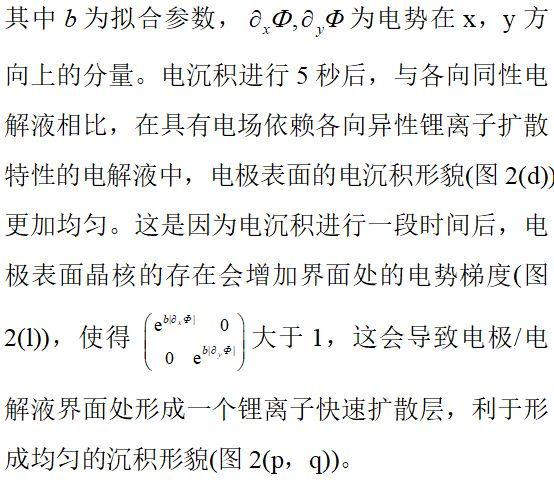 为了探究电场对电解液中各向异性锂离子扩散特性及相应电沉积形貌的影响,我们对 D L进行了如下修正: