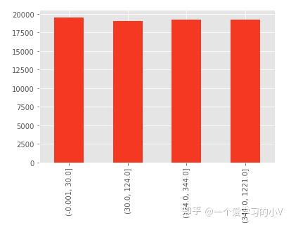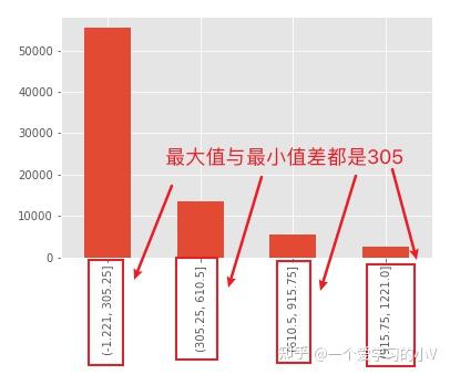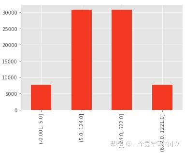 dt['AU002_GRP']=pd.cut(dt['AU002'],4) #用变量的最大最小值差值,除以要分段的个数(4)得到每个箱子的长度 (1221-(-1.221))/4=305