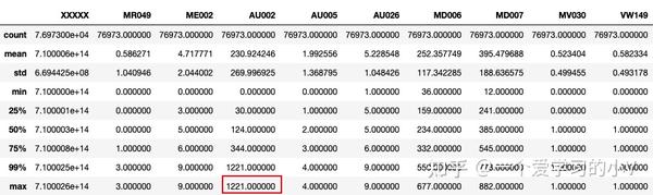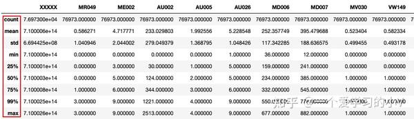 数据的描述型统计结果,一般常用来输出数据的统计表现,如最大最小值,计数,均值,中位数等