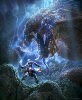 海神,由于奎托斯摧毁了他的都市亚特兰蒂斯而怀恨在心,是首个与他交战的神祇。战败后被奎托斯插瞎双眼,扭断颈部而死。死后海面失去平静,吞噬天地。