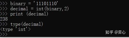 - 这里只讲一点,在Python中我们可以借助int()函数里的2这个参数将 数据类型为字符串的二进制数字 转换成 数据类型为整数的十进制数字, 举例如下: