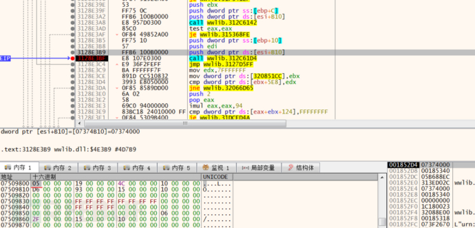 接着 sub_3277FAC0 函数中会执行 call [eax+10] 指令调用 wwlib.3127D3FB。