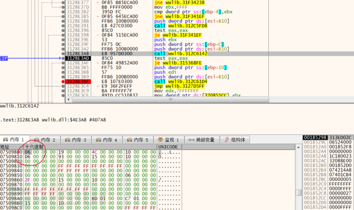 当调试到 wwlib.3127D3FB 函数中的 0x3128E3AD 位置时,嵌套等级变为了 6,说明 wwlib.312C6142 函数更新了嵌套等级。