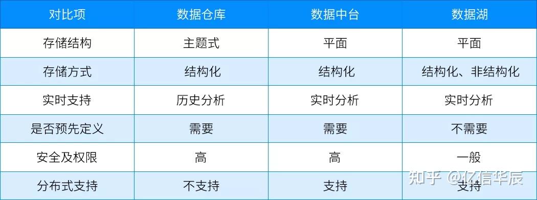 根据以上数据仓库、数据湖和数据中台的概念论述和对比,我们进行如下总结: