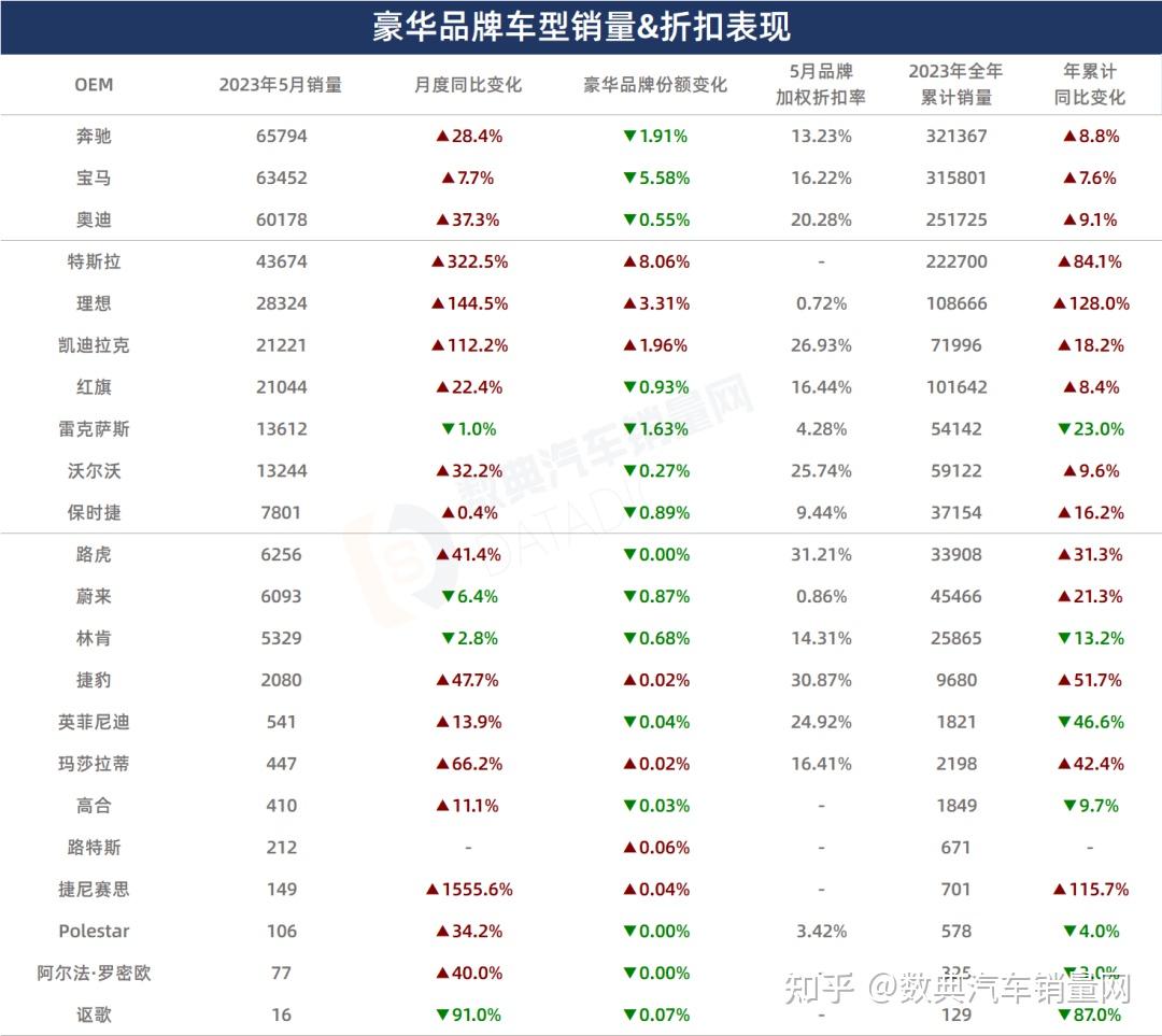 2023年5月汽车豪华品牌市场月报,传统二线豪华品牌销量落后于理想
