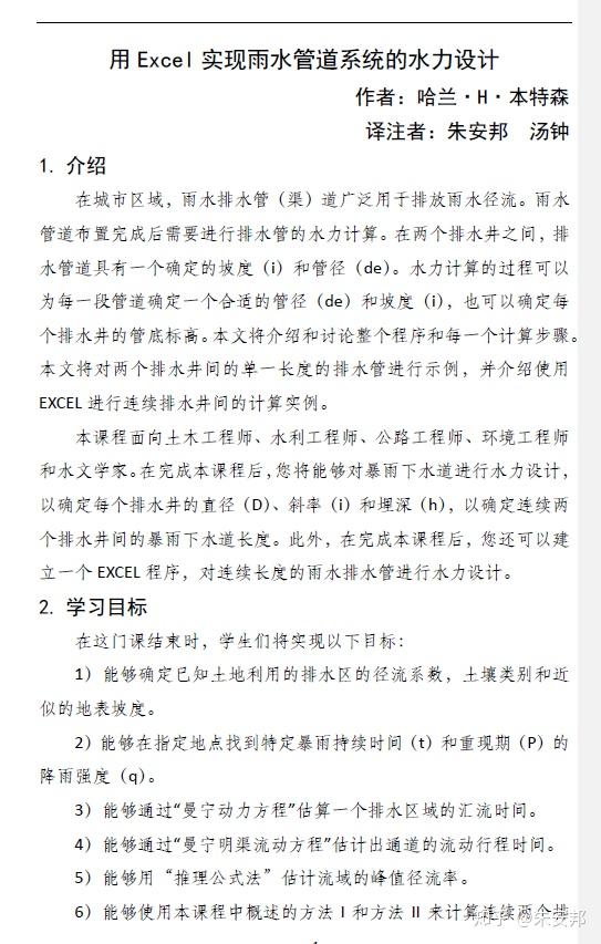 雨水管网的水力计算在本科时就是给排水专业的必备知识,在课本中已经有实际案例。在设计过程中,国内的经典计算方法与国外的计算方法有所差异。因此,利用闲暇时间梳理了国外的雨水管网水力计算方法。在原文的基础上,译注者添加了部分学习笔记,用以比对学习。全文可通过云盘下载,供学习参考。