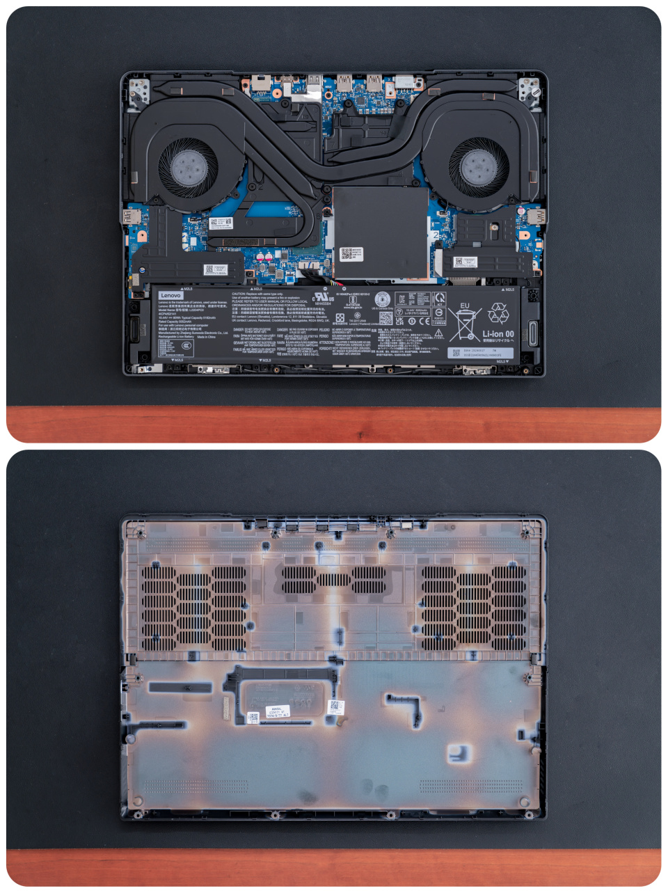 通过十字螺丝刀卸下背面的 6 长 4 短共 10 颗螺丝,借助撬片就可以轻松开盖联想拯救者 Y9000P 2024。开盖后,内部设计相当规整。