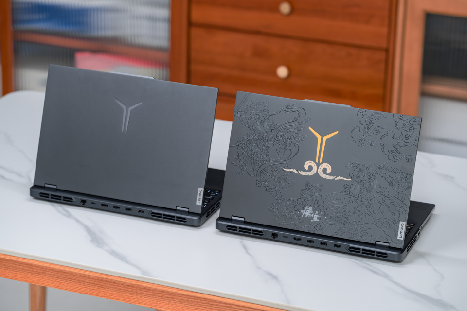 这款机型的外观是联想拯救者与游戏科学联合设计,可以看到对比冷峻深邃的经典款版本 R9000P 2023,联名定制款 Y9000P 2024 真得不要太炫酷了。