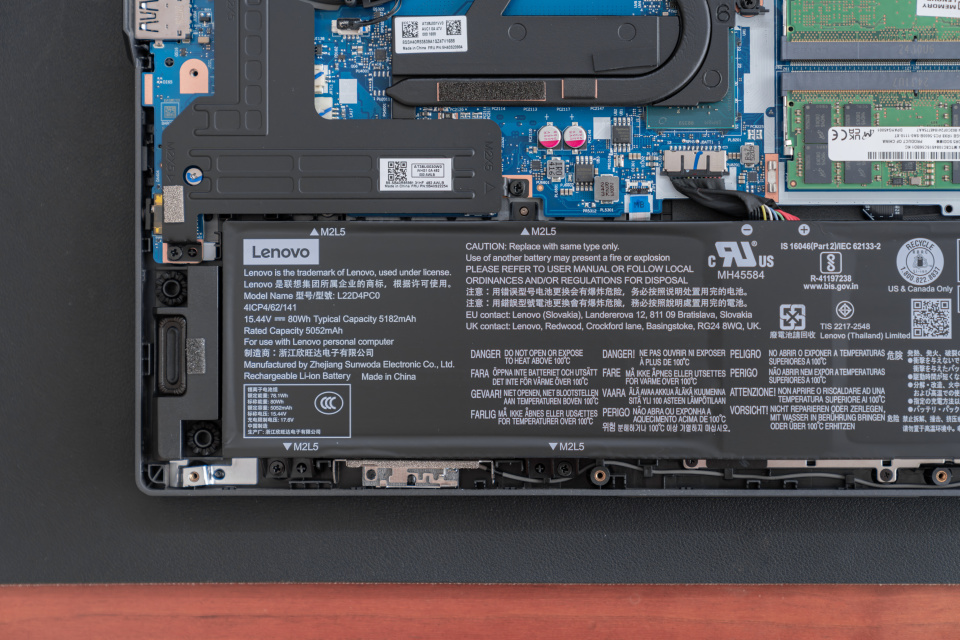接下来看看内存,联想拯救者 Y9000P 2024 的内存有一个正方形的金属屏蔽罩,内侧为两根