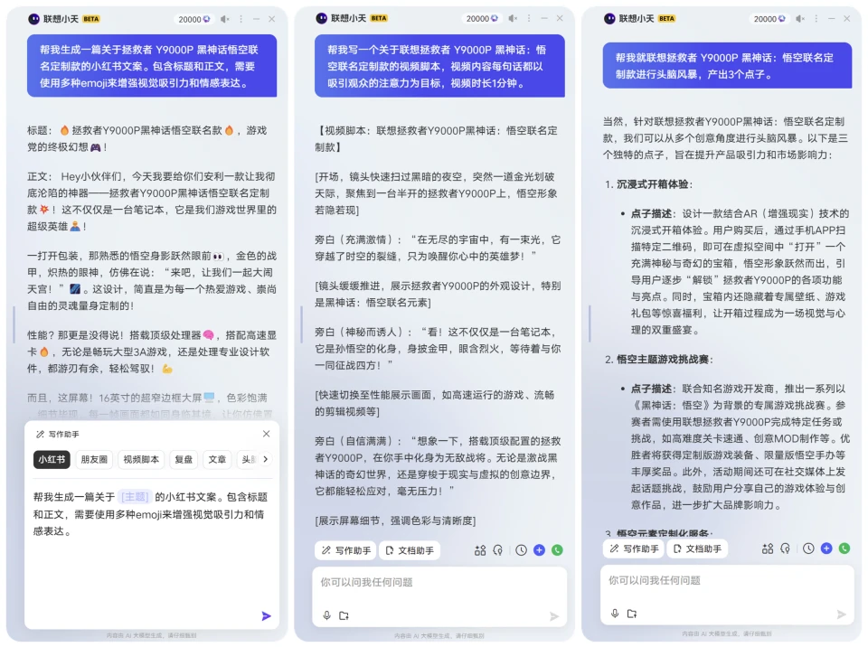 除了不错的 AI 性能外,联想拯救者 Y9000P 2024 还内置了一个专为 AIPC 设计的 AI 助手——