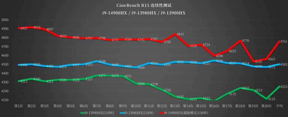 最后,我们给联想拯救者 Y9000P 2024 安排三轮烤机测试,看看性能释放和发热情况。为了充分释放性能,在拯救者领域中打开了