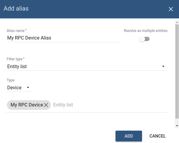 在“实体列表”字段中选择您的设备。在此示例中为“我的 RPC 设备”。