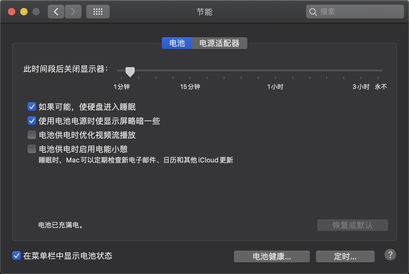 再加上卡特琳娜系统增加了电池健康管理的功能,就算你长期连接电源,系统也会不定期让电池进行一次充放电的过程(你可能遇到过电脑明明连接着电源,但是并没有充电,还会掉电,过一段时间又好了,就是电池健康管理起了作用),以尽可能让电池保持健康的状态