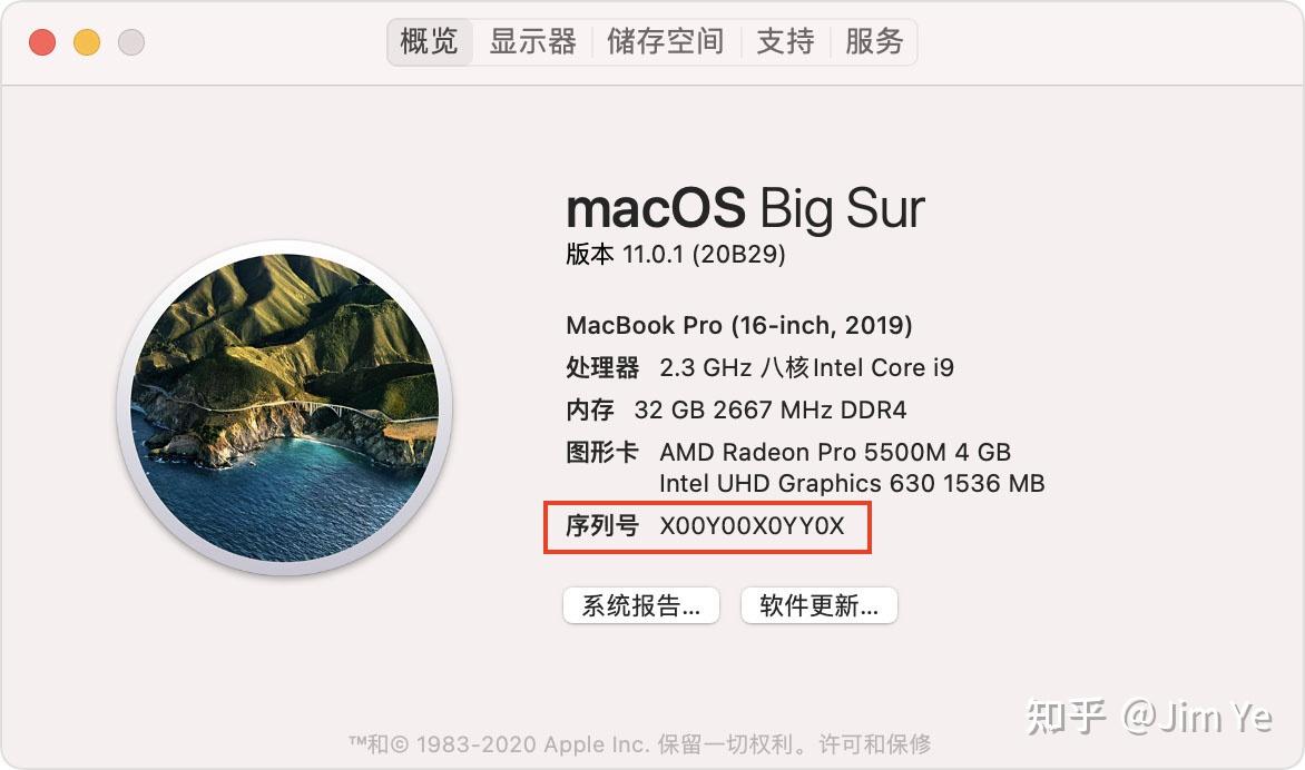 」查询了一下我这台MacBook Pro的保修情况,这里首先需要输入设备的序列号。设备的序列号可以从屏幕角落的苹果菜单 中选取“关于本机”查到: