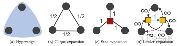 熟悉超图的uu们可能还会问,为啥不用其他展开方式呢,比如团展开(Clique expandsion)和星展开(Star expandsion),这些超图规约方式也是很常见的呢