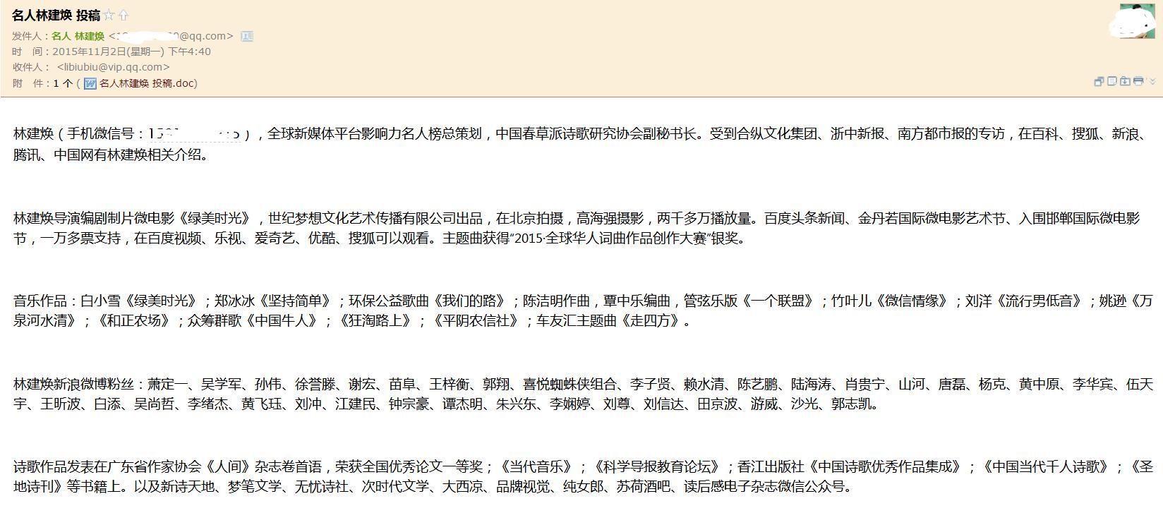 比如这个给我投过稿自称是“名人”的邮件: