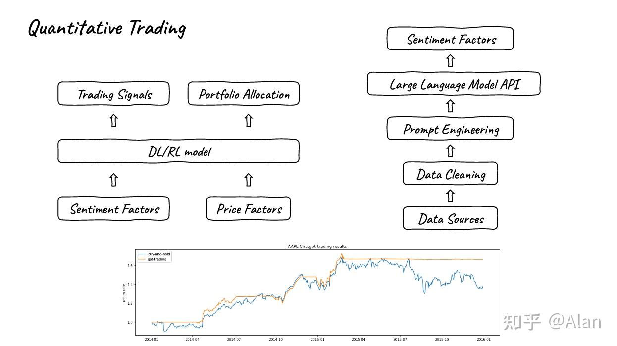 - 我们还可以使用新闻、社交媒体推文或者公司公告来 构建情感因子 ,右侧的部分是由Twitter推文和ChatGPT信号产生的交易结果,数据来自于一个称为 stocknet-dataset 的数据集。