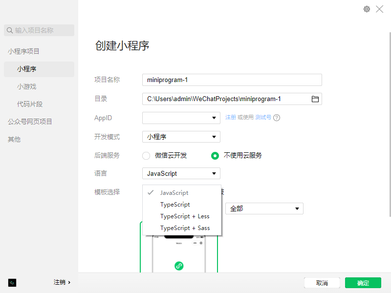 首先更新微信开发者工具到最新版,在创建新项目时选择 TypeScript 语言。