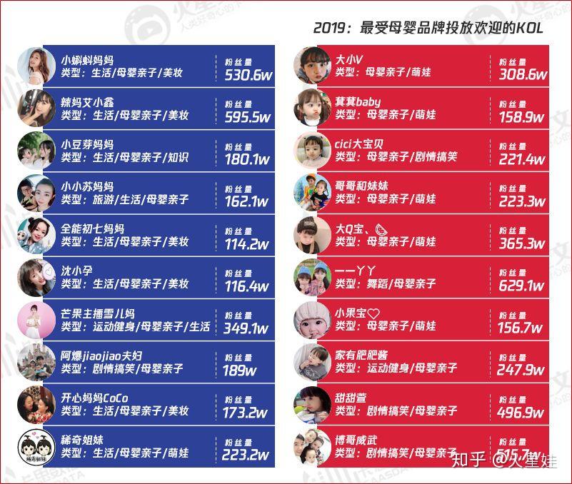 ▲2019:最受母婴品牌投放欢迎的KOL,数据来源:卡思数据