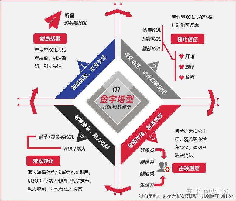 ▲品牌KOL投放常见策略1:金字塔型,观点来源:火星营销研究院