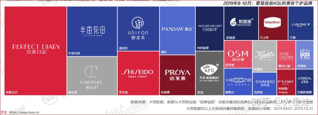 ▲2019年8-10月:最爱投放KOL的美妆个护品牌,数据来源:卡思数据