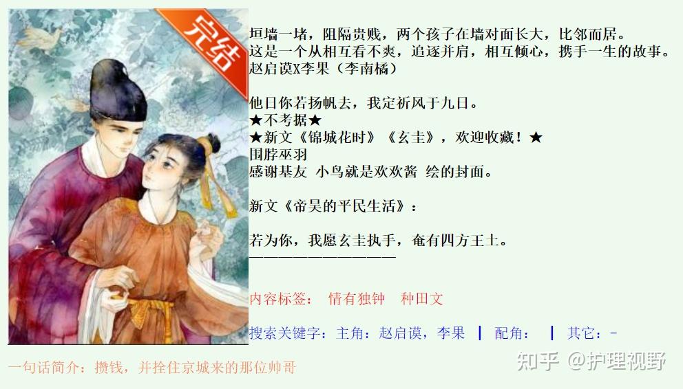 当然,作者的所有作品我都刷完了,推荐程度《枣儿沟发家记》>《落魄侯爷种西瓜》>《我在大宋卖火锅[种田]》>《皇家米虫,虫虫虫!》>《和前男友一起穿越了[种田]》>《如何成为男皇后》。