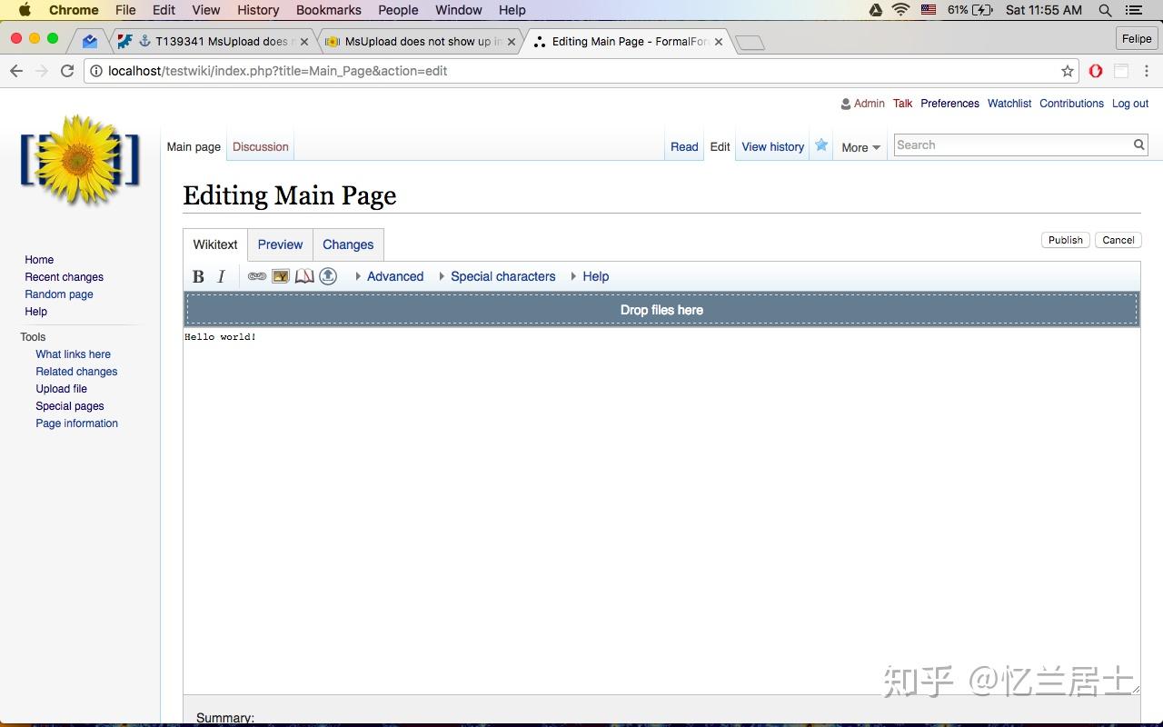 对新手而言绝对是编辑利器,安装颇为麻烦(需要parsoid的支持),后续会开一篇如何安装可视化编辑器的文章。
