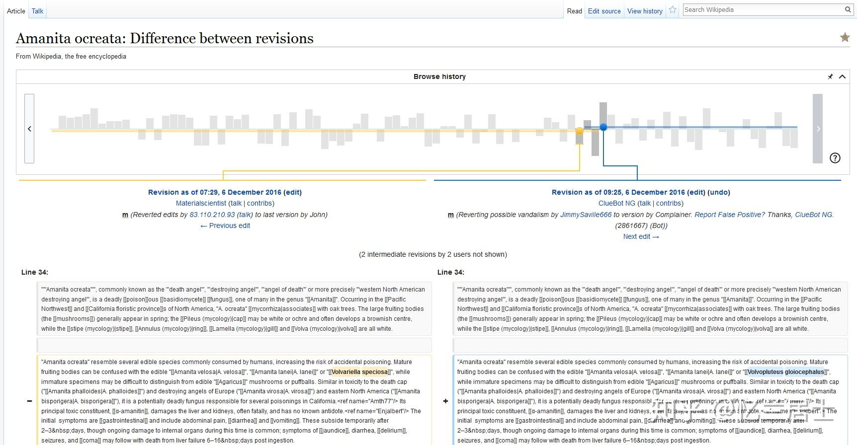 显示一个滑块,它允许在差异页面上选择和比较修订。